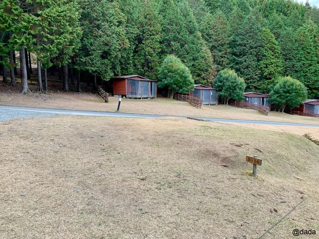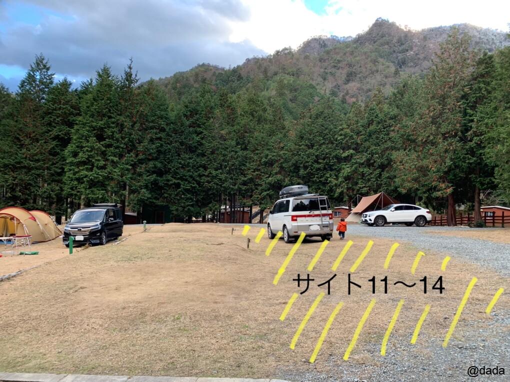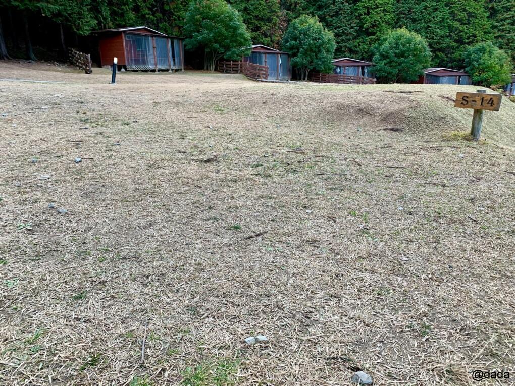 サイト1〜14のオートキャンプサイトの上下に数多くあり、少人数ならこれくらいの大きさでちょうどかもって感じです♪