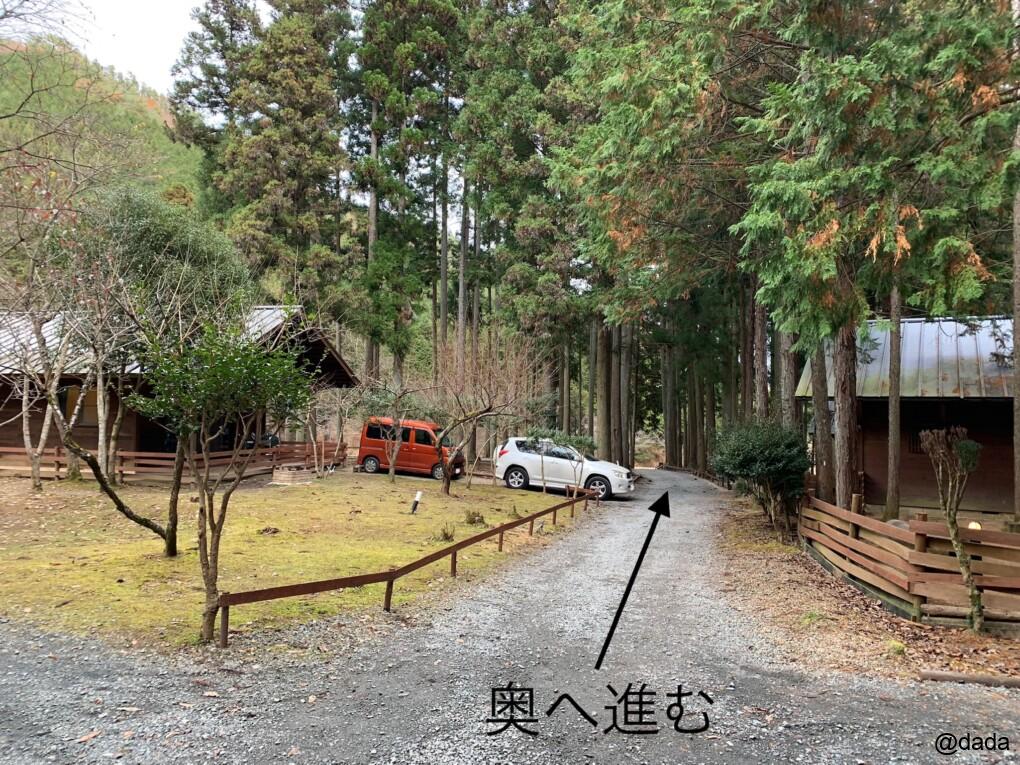 キャンプサイトへ行くにはいったん入ってきた道へ出て、右折して進んでいきます。