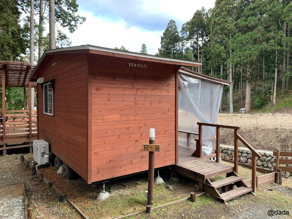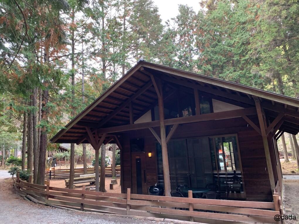 メインとなるオートキャンプサイトの横に配置されたロッジです。