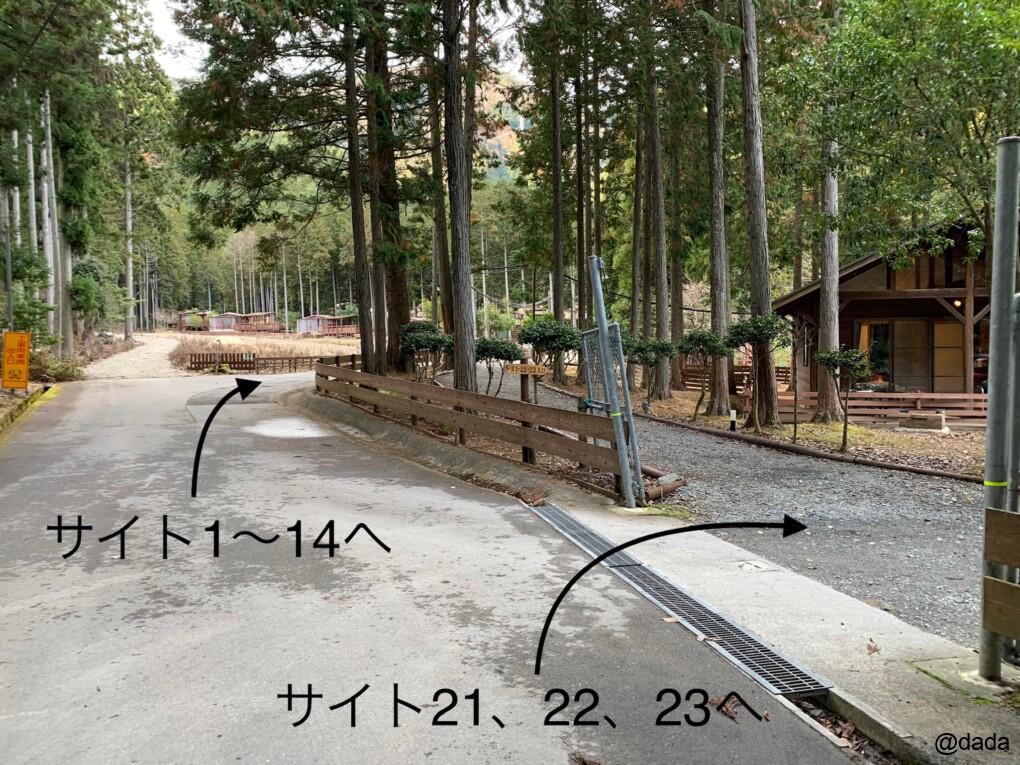 サイト21〜23へは、場内道路から右へ入っていきます。