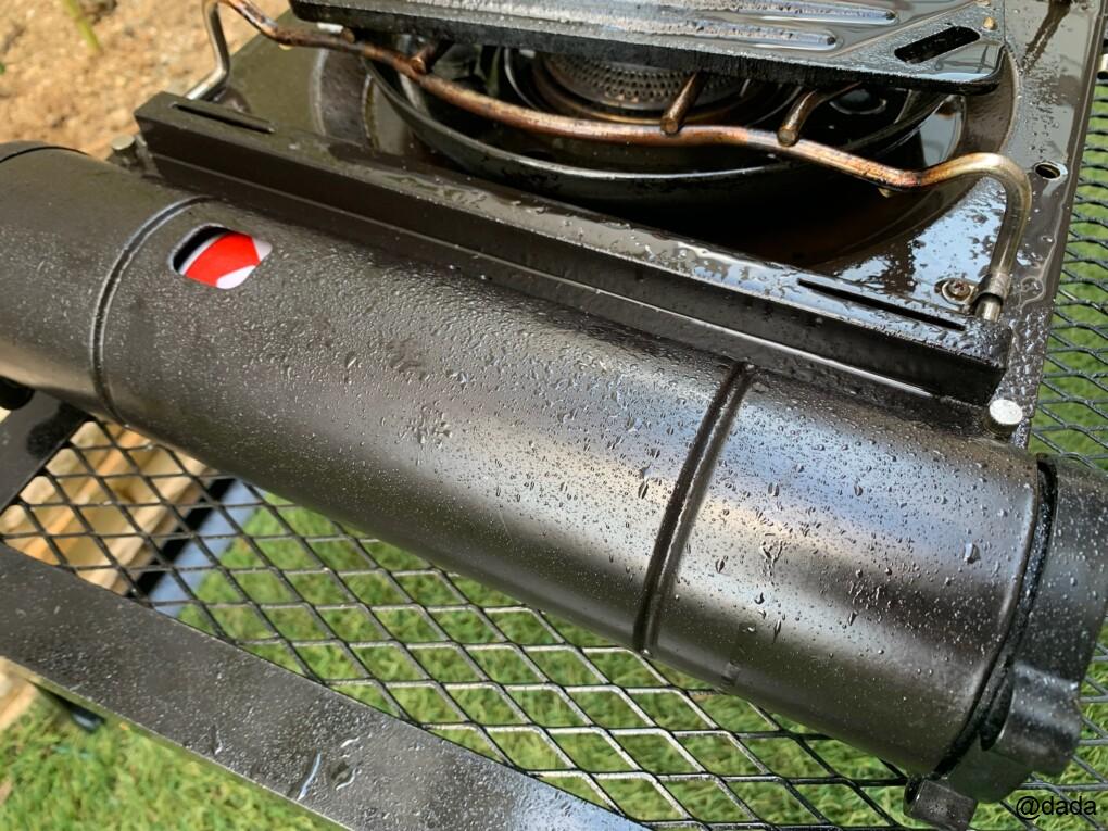 もちろん屋外で焼いてたので周りは大丈夫でしたが、コンロとして使用していたマーベラスⅡはこんな感じ。