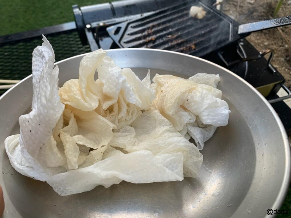 キッチンペーパーで拭き取ると、ペーパーがびちょびちょになるくらいの脂でした。