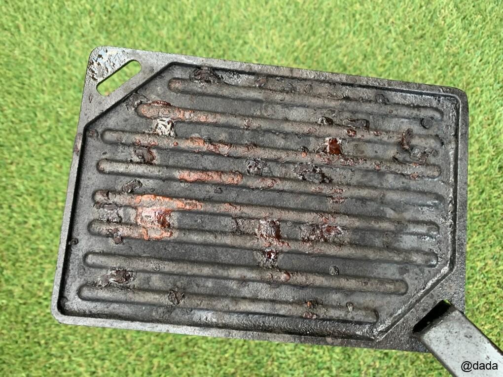 ほんとにただの鉄板なので、肉を焼いた後はいつも汚れが付きますが、これはなかなか頑固です。