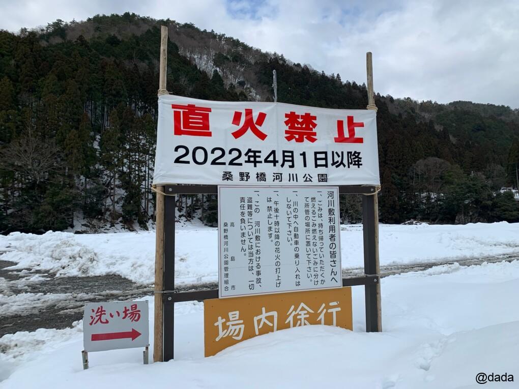 ☜2022年4月以降、桑野橋河川公園は全面直火禁止となっています!必ず焚き火台のご使用を!!