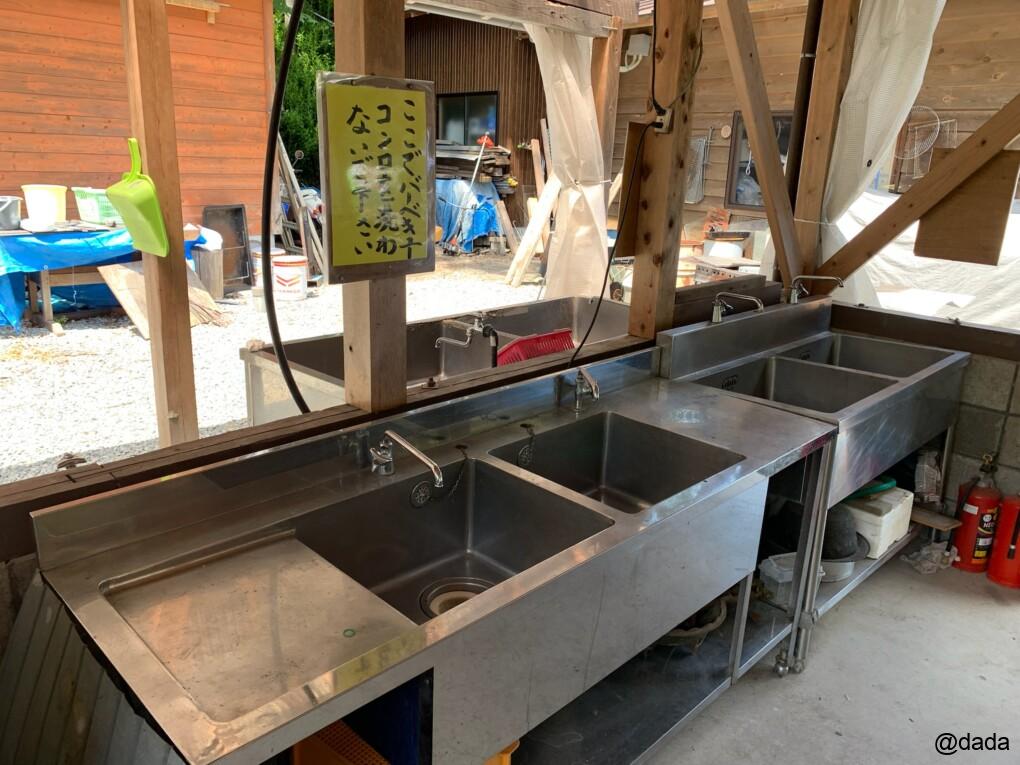 炊事場は管理棟の横に1ヶ所のみですが、場内の広さやデイキャンプ利用となることを考えると、さほど不便ではないかと。