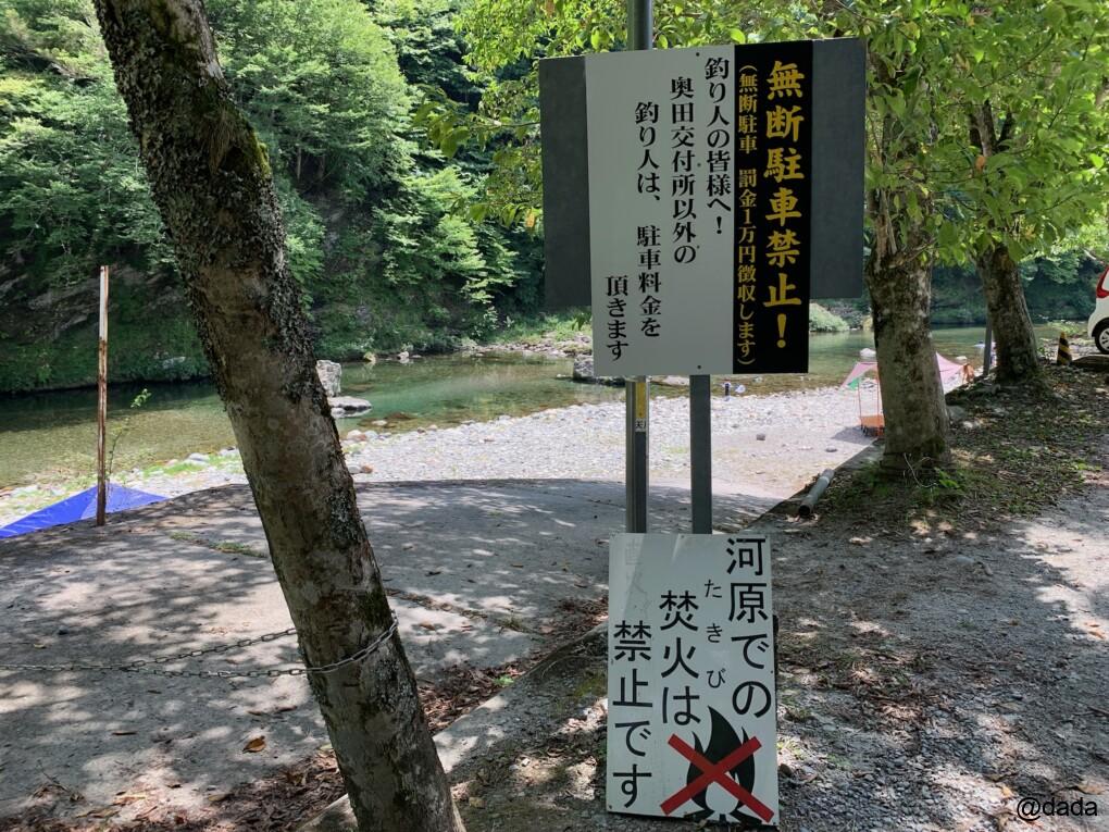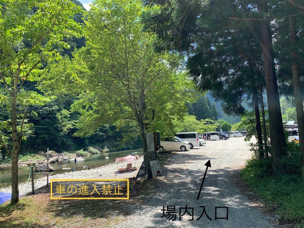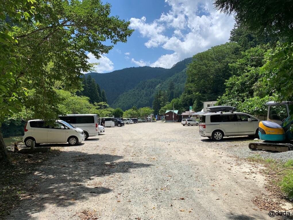 デイキャンプ利用をする場合、サイトとなる川原へは車の乗り入れができないため、駐車場のどの辺りに駐車するかがポイントになります。