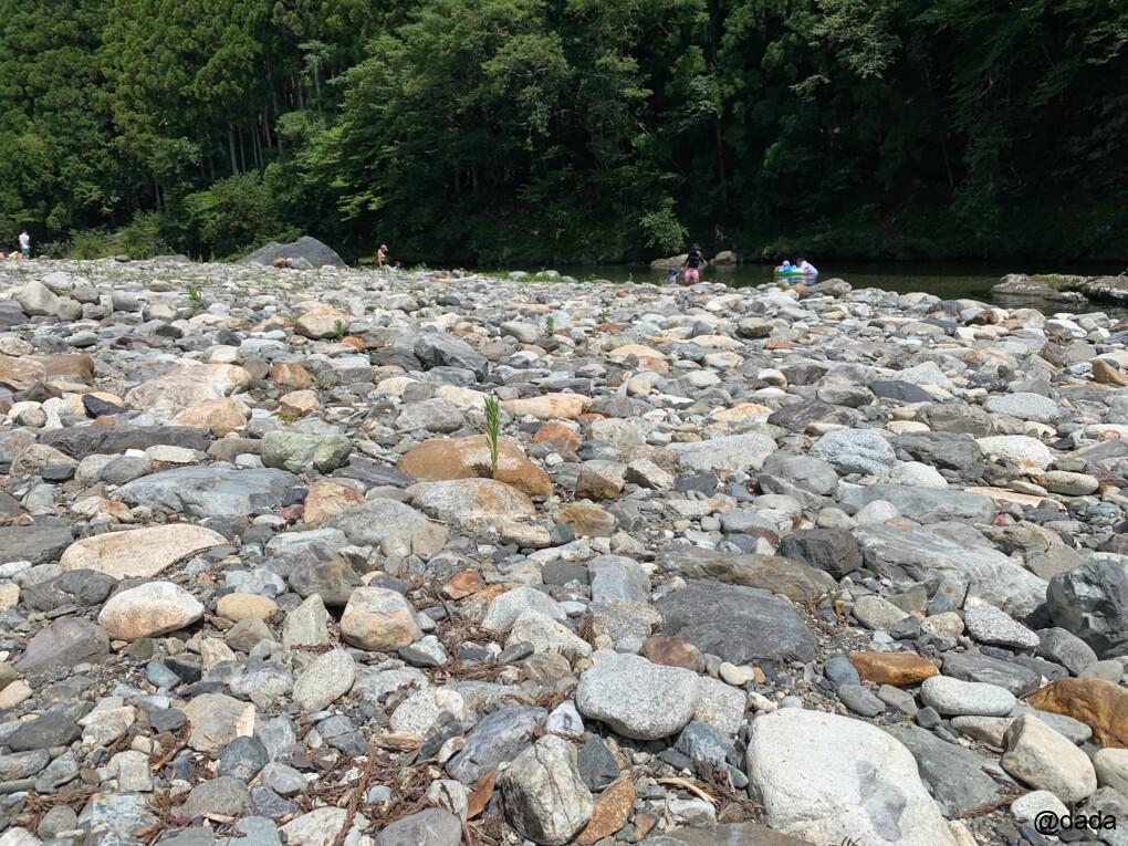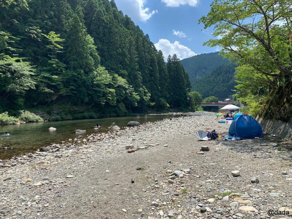 後ほど詳しくご紹介しますが、川に近いエリアは石がごろごろしすぎてて、テントやタープの設営はほぼ無理(*_*)