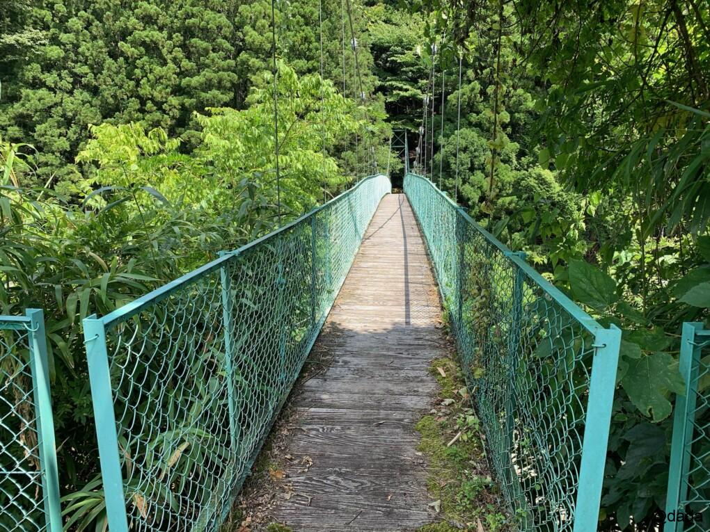 場内を出て少し歩いていくと、細い緑色の橋が。