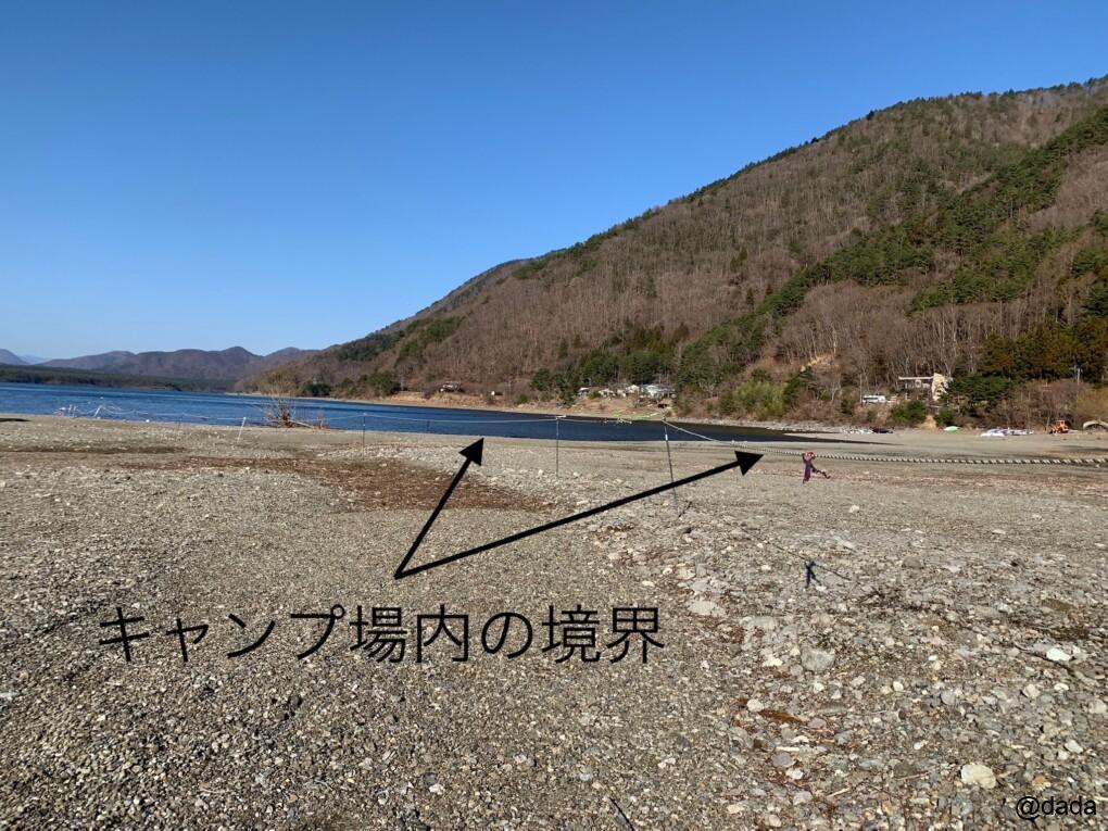 サイトを奥へ進んでいくとロープが張られており、そこがキャンプ場の境界になります。