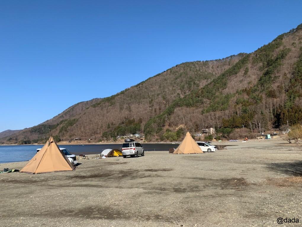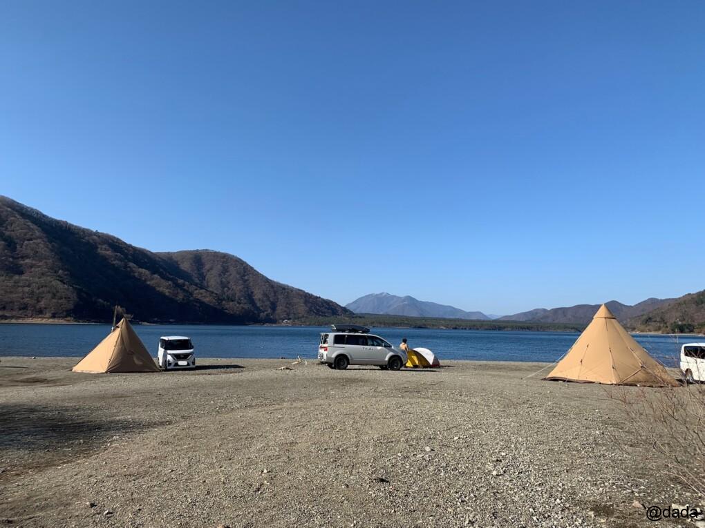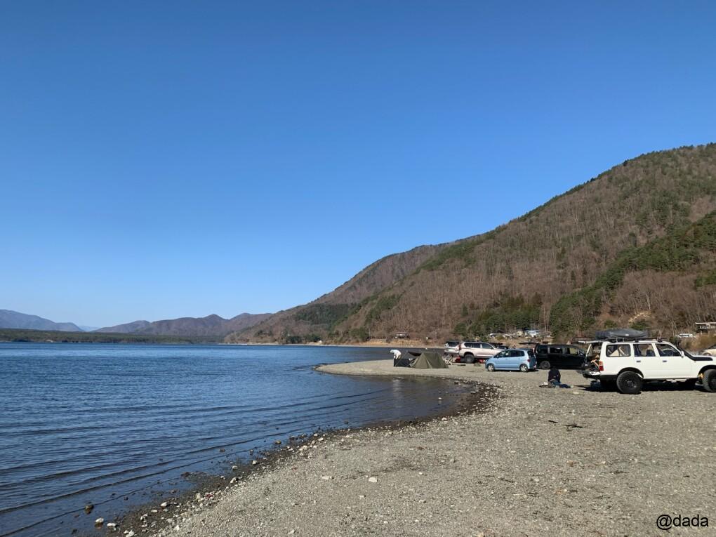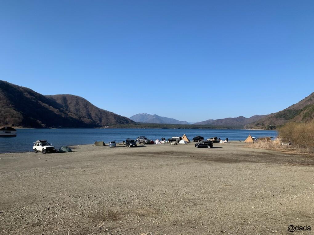 この日もこんな感じで、皆さんけっこう湖畔に近い場所でキャンプされてました(^ ^)