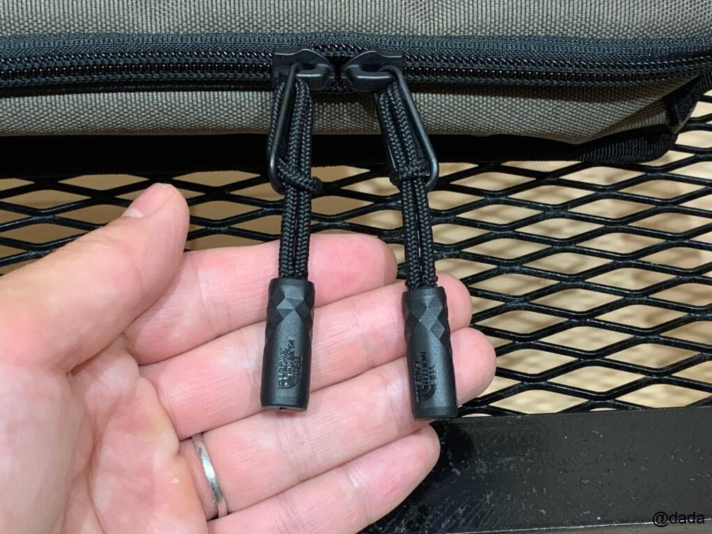 本体正面にはもちろん、よーく見るとファスナーの取手部分にも小さくロゴが彫られています。