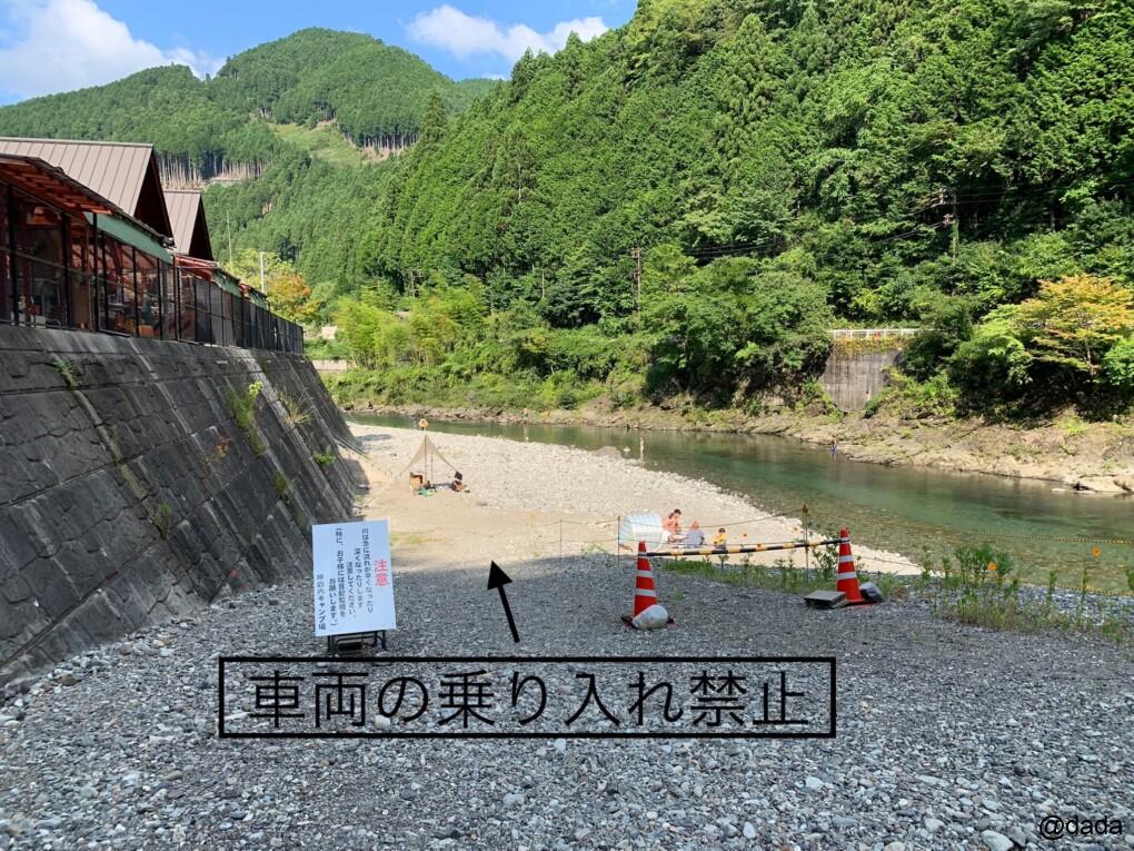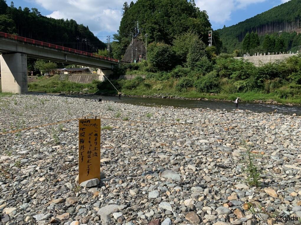川原はデイキャンプ専用での利用となっているため、例えば川原にテントを張って泊まりキャンプをすることはできません。