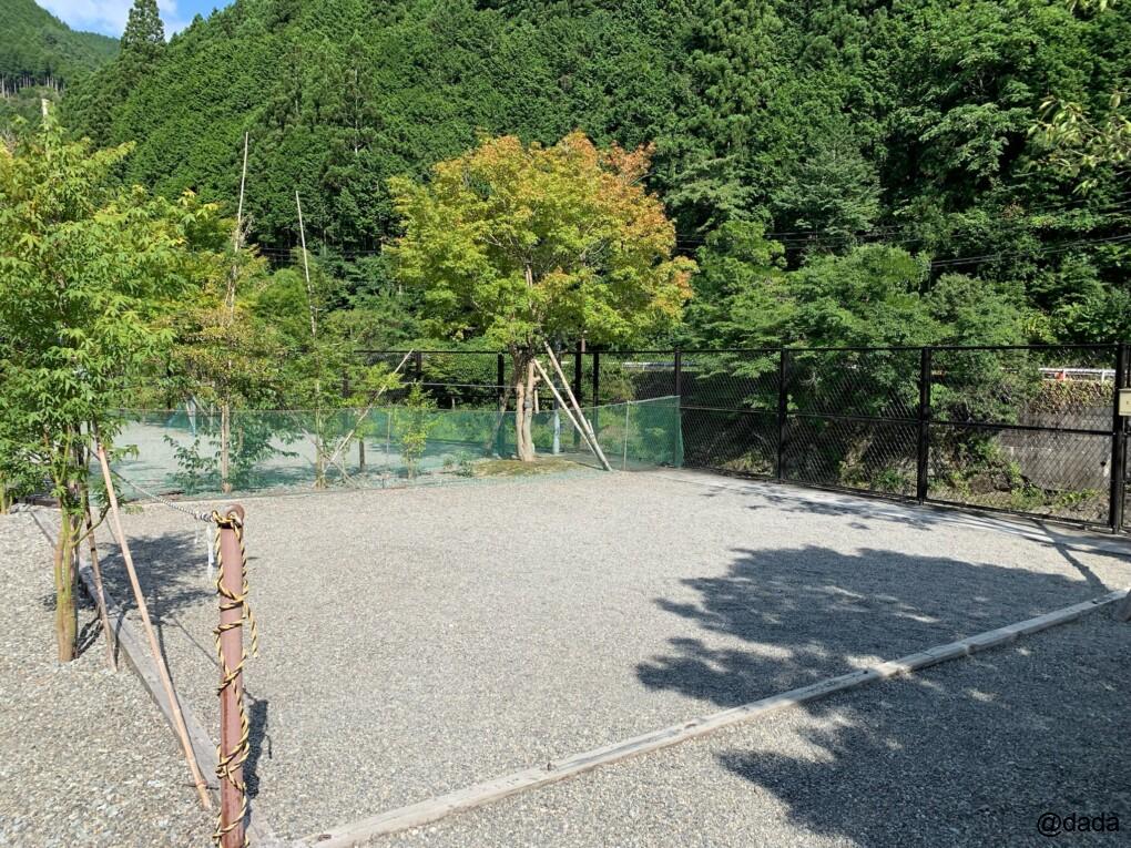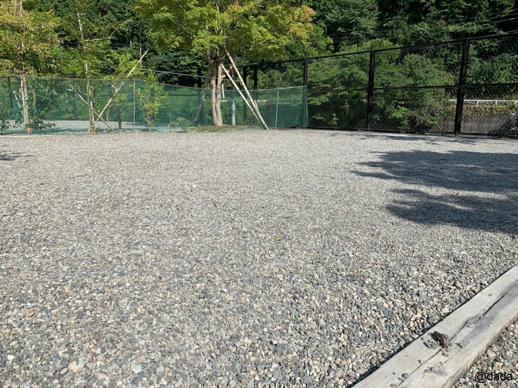 区画どうしはネットと地面に敷かれた木できれいに分けられており、完全にフラットな砂利のサイトです。