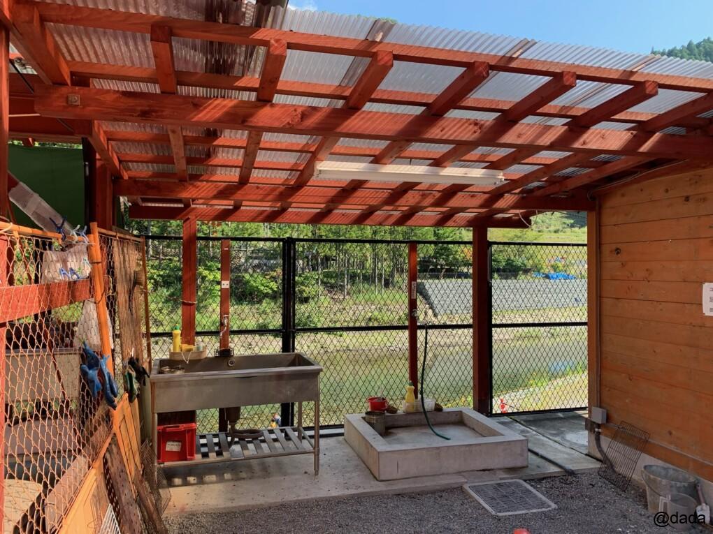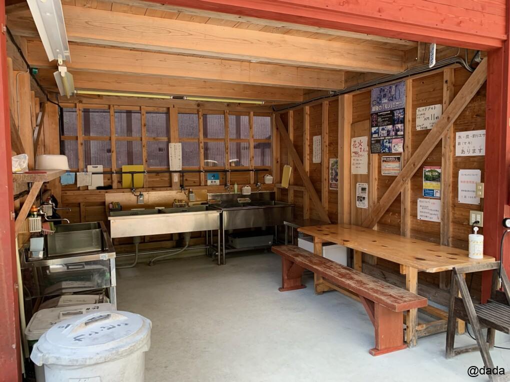 炊事場は管理棟と同じ建物に含まれており、管理棟の館の半分が炊事場という感じ。