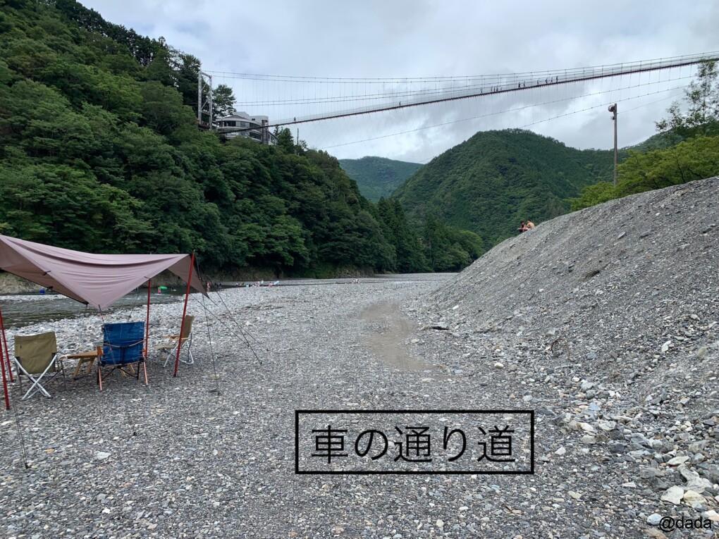 周りには遮るものがなく開放的なエリアですが、川の増水時なんかは注意が必要。